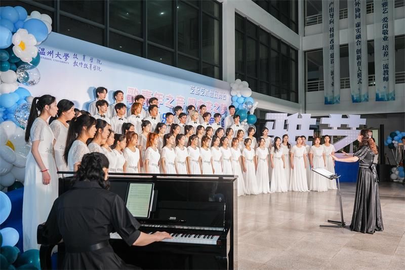 近日,一场别开生面的瓯乐合唱团专场音乐会在日本a片 教育学院举行。瓯乐合唱团是日本a片 教育学院与日本a片 团委联合共建的校级大学生合唱团,也是温州市合唱协会团体会员单位。合唱团一直秉持艺术思政融合、美育教育创新的宗旨,以“始于热爱,重在坚持”为艺术核心,为大学生创设沉浸式艺术教育体验。这是“瓯乐”合唱团首次举办的音乐会,也是温大艺术思政体系建设的重要成果展示。