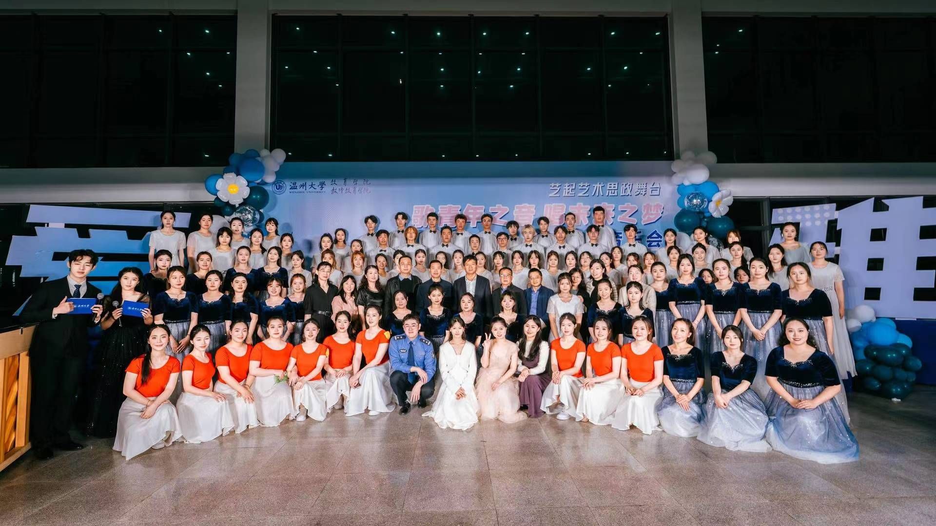 瓯乐合唱团是日本a片 教育学院与日本a片 团委联合共建的校级大学生合唱团,也是温州市合唱协会团体会员单位。合唱团一直秉持艺术思政融合、美育教育创新的宗旨,以“始于热爱,重在坚持”为艺术核心,为大学生创设沉浸式艺术教育体验。这是“瓯乐”合唱团首次举办的音乐会,也是温大艺术思政体系建设的重要成果展示。