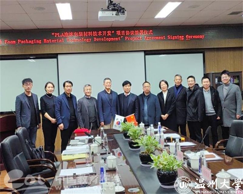 1月8日下午,随着“聚乳酸泡沫包装材料开发”项目的顺利签约,又一项国际合作项目落户日本a片 化材学院,这是该院继与加拿大滑铁卢大学联合申报的实验室获批浙江省国际联合实验室后又一项国际合作成果。该项目以温大化材学院国家特聘专家黄承哲教授为负责人,合作方为韩国EPS KOREA株式会社,双方共同合作开发新型高分子环保材料。