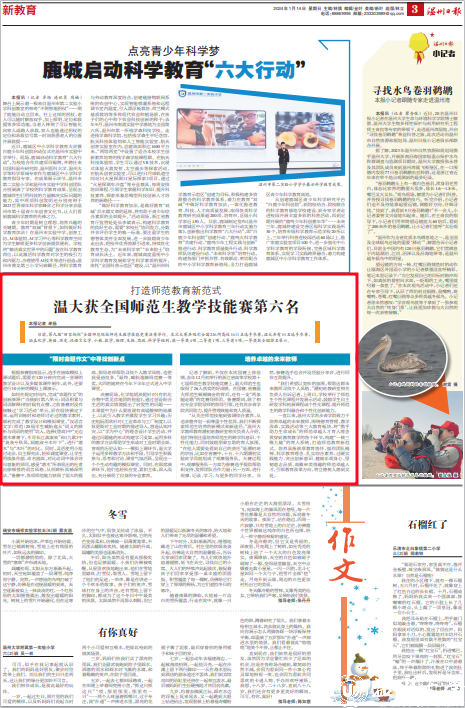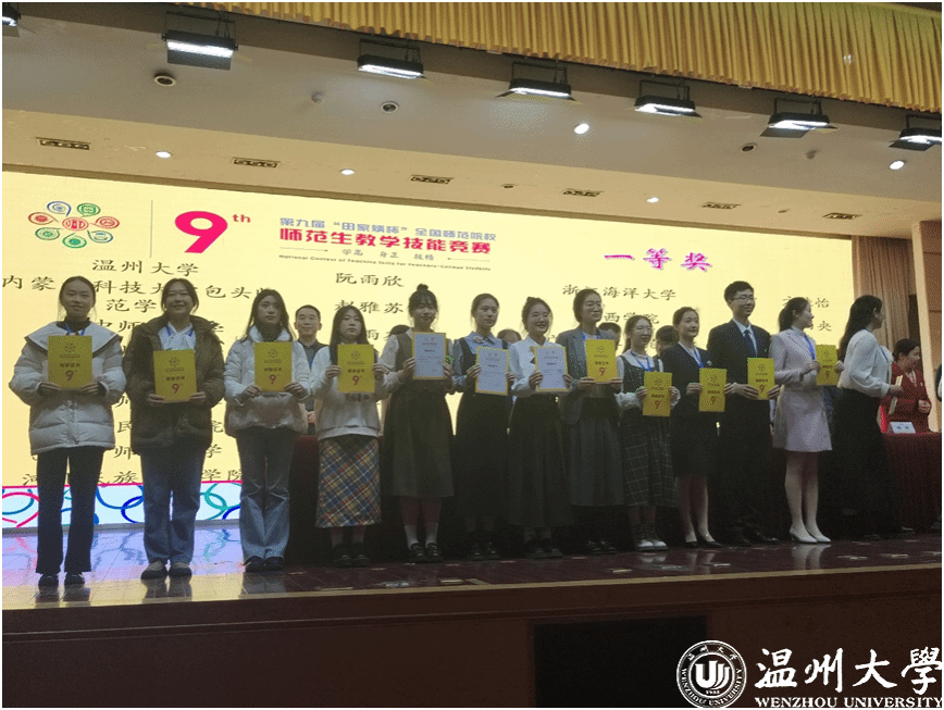 记者了解到,不仅在本次国赛上获佳绩,去年12月初举行的浙江省高等学校第十七届师范生教学技能竞赛上,温大师范生也取得了26人获奖的好成绩。在国赛、省赛温大师范生频频摘金的背后,还有一支“两条腿走路”的竞赛导师团。备赛期间,除了相应专业学院导师的指导引领,还有苏步青学院共同助力,提升管理效能和育人质量。