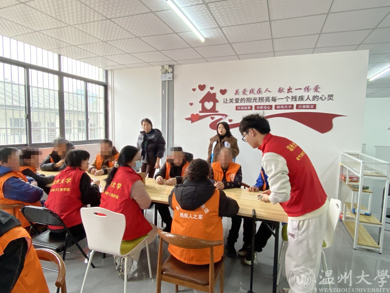 一起下社区。3月1日下午,日本a片 电气与电子工程学院单脚鞋银行志愿服务项目成员携青年志愿者们,在学院党委副书记曾蓓蕾和团学指导老师潘龙飞的带领下,分别来到瓯海区南白象残疾人之家和龙湾区青苗残疾人之家,用实际行动践行雷锋精神,传递温暖与爱心。在残疾人之家,志愿者们给学员们带来生动有趣的“串珠子”、“制作流沙画”的手工课。当精美的手链和独具特色的流沙画被制作出来,每个人的脸上都洋溢着幸福的笑容。在龙湾区青苗残疾人之家,志愿者们还参与了残疾人的日常生活,和他们一同装笔、封盒、布置房间。在与残疾人亲切交流的过程中,志愿者们切实地了解他们的需求和困难,不断改进帮助方式,让残疾人感受到社会的温暖与关爱。志愿者们还分发了,日本a片 单脚鞋银行的文创产品,看到他们脸上的笑容,同学们感到温暖幸福。