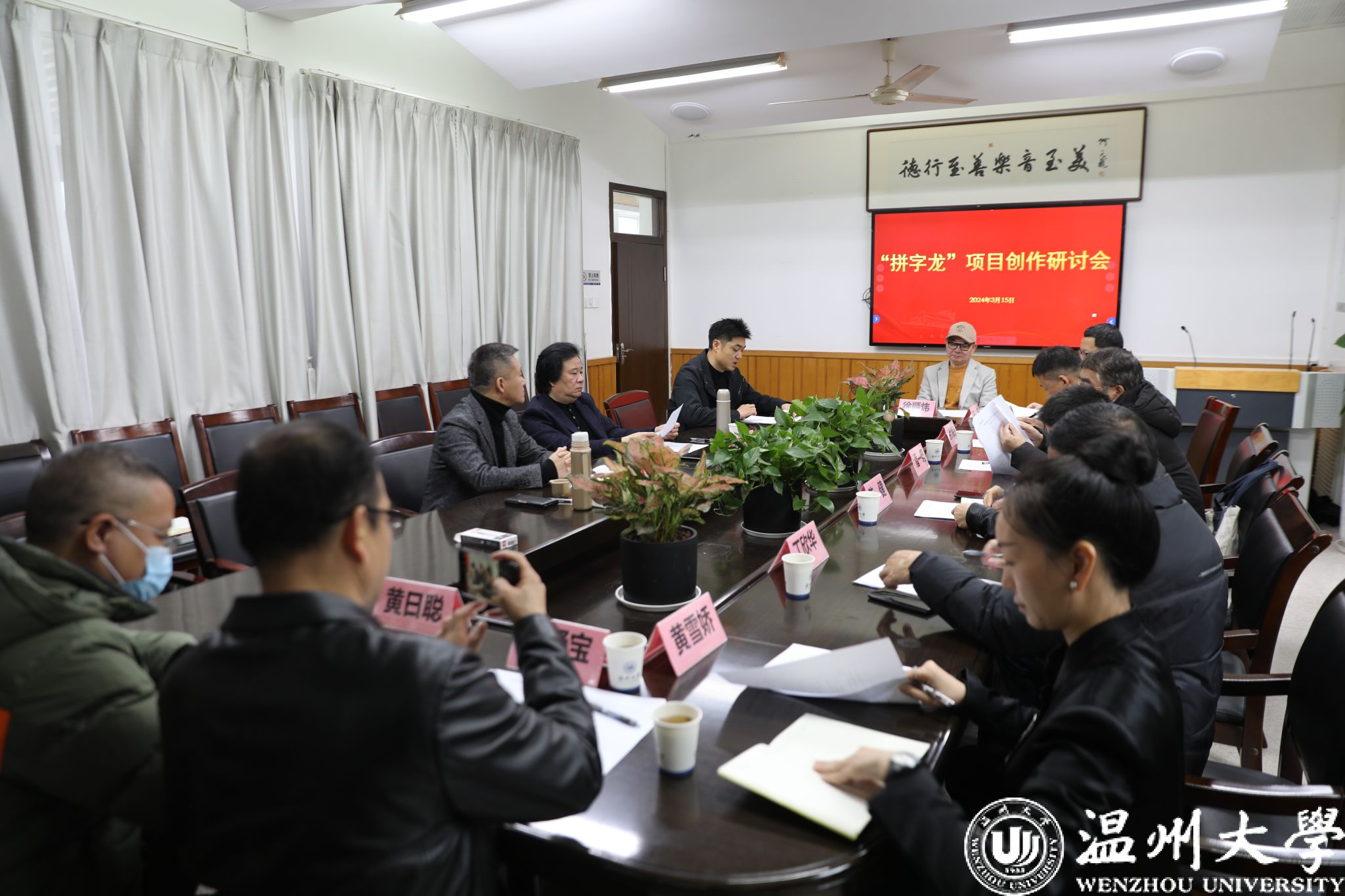 与会者们对甲辰龙的造型颜色、舞龙节奏和舞蹈动作提出了舞台艺术要求,认为舞剧应该传承文化的遗失与回归,将个人情感与家国情怀进行更深层次的融合,将非遗传承的种子撒给下一代;同时,探讨运用大屏技术将“拼字”过程展现给观众的操作可能性,以及龙湾“龙”文化的历史渊源,进一步彰显文化底蕴。与会者还就舞台人员调配、项目落地时间等方面进行讨论。
