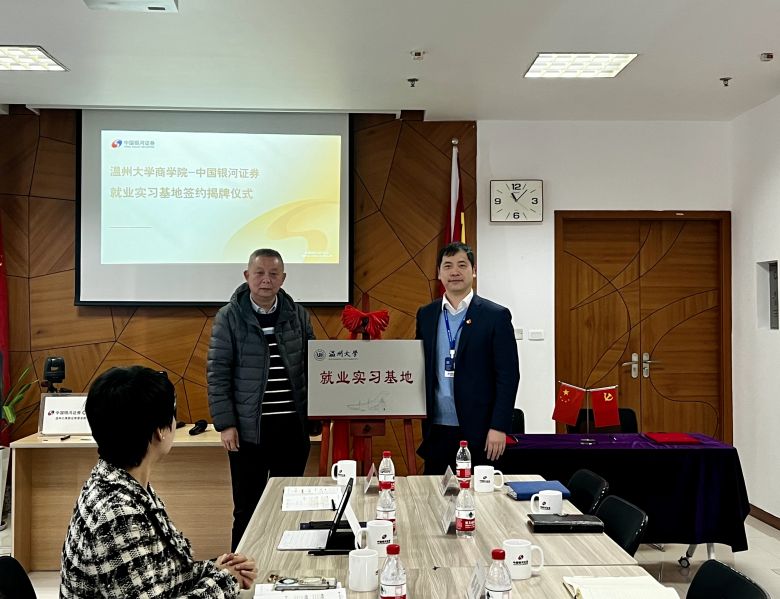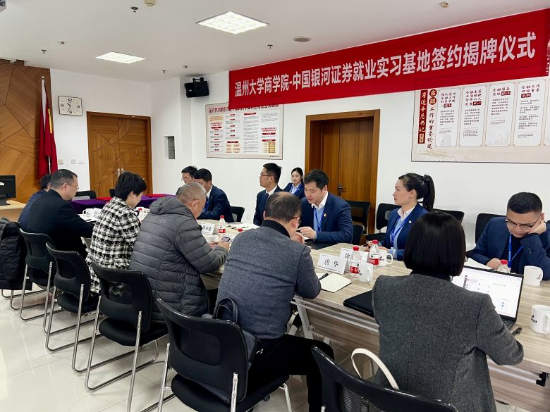 3月21日,日本a片 商学院与中国银河证券温州大南路证券营业部举行了就业实习基地签约暨揭牌仪式。日本a片 商学院院长胡振华、党委书记李密等一行出席签约仪式并座谈交流。