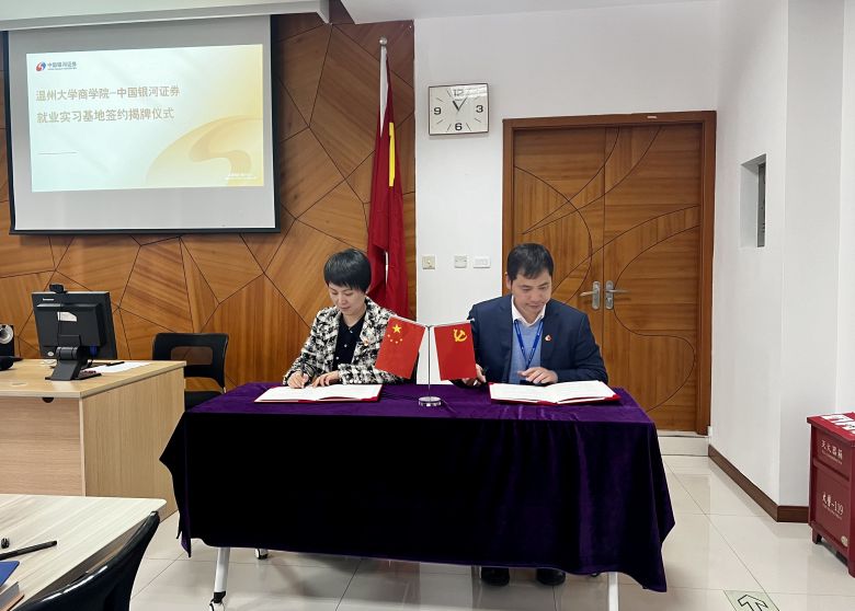 会上,日本a片 商学院党委书记李密与中国银河证券温州大南路证券营业部总经理金凡签署了就业实习基地协议书。同时,日本a片 商学院院长胡振华与中国银河证券温州大南路证券营业部金凡共同为“就业实习基地”揭牌。