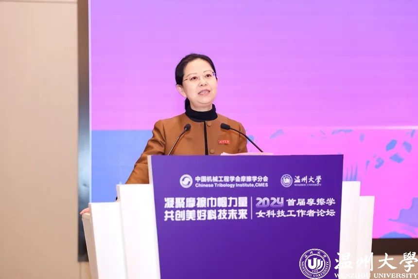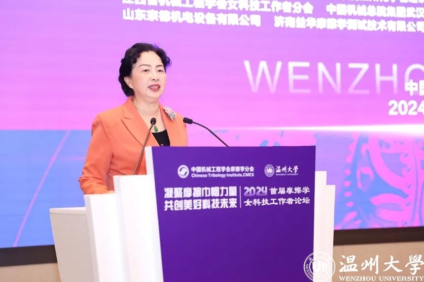 周仲荣主任委员在致辞中表示:本次论坛的召开,旨在贯彻落实党的二十大、中央人才工作会议和《关于实施科技创新巾帼行动的意见》、《支持女性科技人才在科技创新中发挥更大作用的若干措施》等文件精神。并强调这个论坛不仅是我国摩擦学的重要创举,是我国摩擦学发展过程中的具有里程碑意义一件大事,更是对女性科技工作者在科学研究和技术创新中不可替代作用的一次高度认可和充分尊重。希望通过本次活动,进一步彰显我国摩擦学领域女科技工作者的卓越风采。