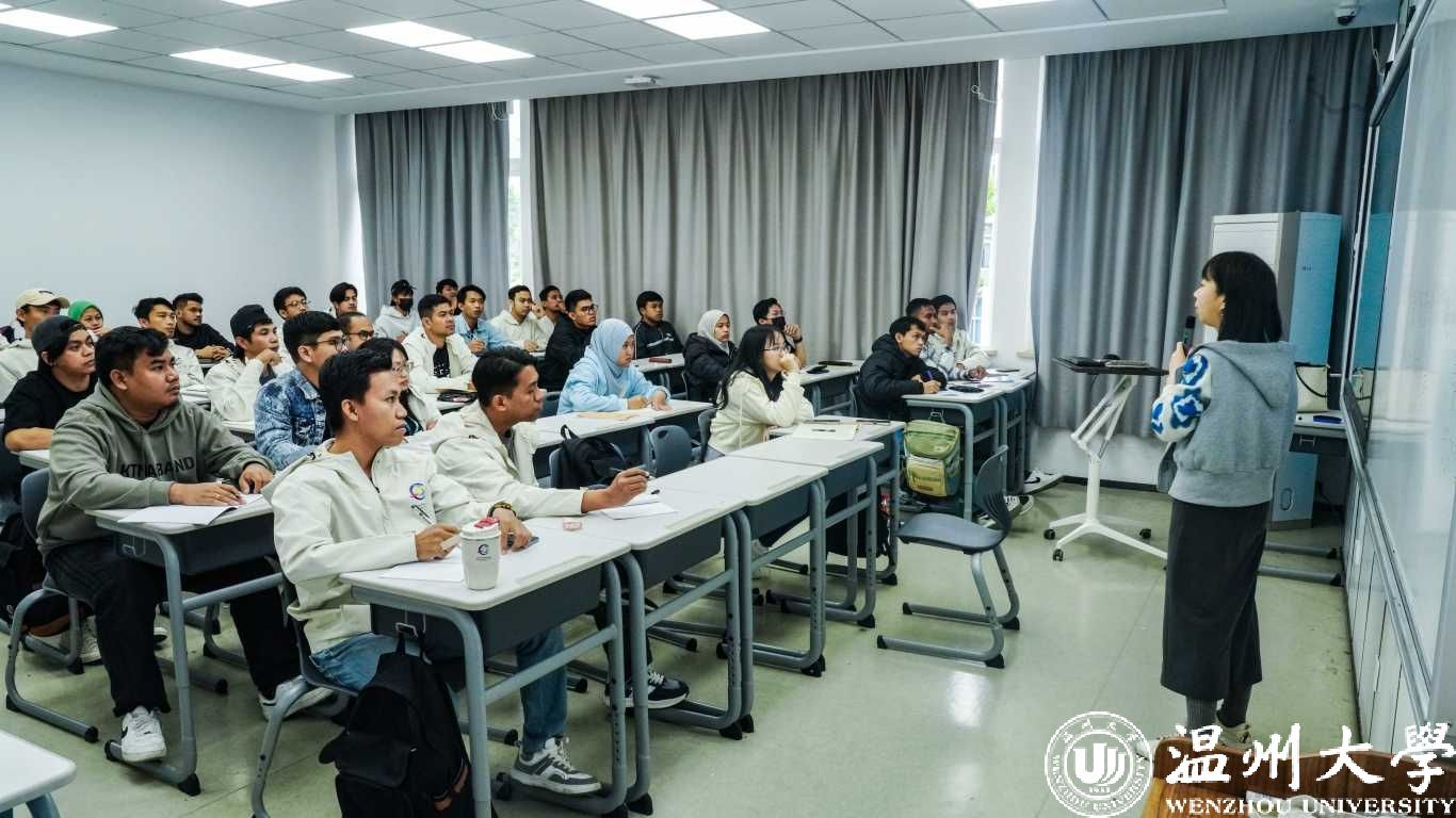 为了确保“青山班”项目高质量开展,温大国际教育学院全程采用服务型跟踪式教学模式,精准化掌握每位学员的学习动态,及时对学员在学习生活中遇到的困难给予指导和帮助。首届“青山班”学员在今年1月圆满完成学习任务,带着不舍与回忆满载而归,不久后,第二批69名学员“接棒”踏上瓯越大地。