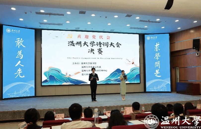 大会分为“原创诗词展示”“AI诗词创作”和“诗词知识竞赛”三个环节,共收到温大各学院近400位学子报名信息,其中AI诗词投稿约占三分之一,作者来自各学科各专业,文理兼具。经过前期线上海选和初赛,3个赛道共40位选手入围决赛。伴随郑东毅同学用AI创作出的古风背景音乐,同学们声情并茂的古诗诵咏吟唱,将大家一键带入优美典雅的诗词氛围里,拉开了比赛的帷幕。