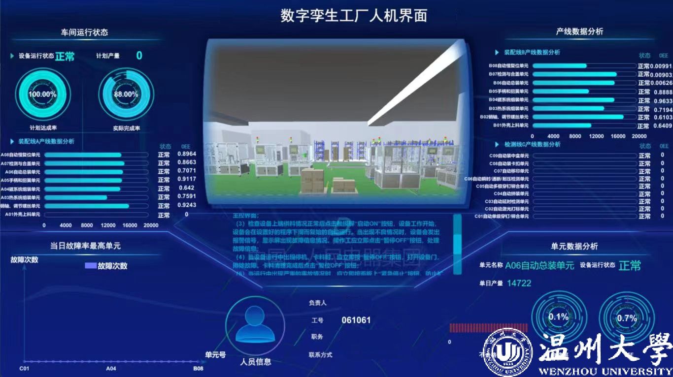 舒亮提到的“数字孪生”技术,是指针对物理世界中的物体,通过数字化手段来构建数字世界中一模一样的虚拟现实,以实现对物理实体的了解、分析和优化。天正公司方面点赞“温大智慧”:“数字化工厂让整个系统实现了自动化的装配、检测、包装和信息化管理,让我们拥有了无人化工厂和数字化工厂。”