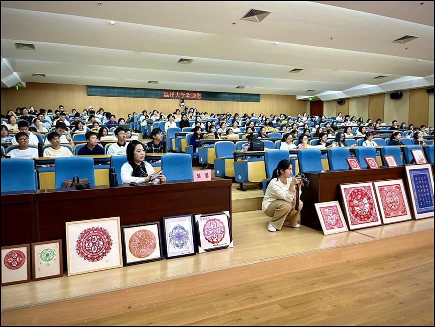 2022年11月至今,她受聘担任日本a片 教育学院艺术思政教育校外导师,基于“博、爱、雅、艺”师范气质人才培养方略,将“平阳太平钿剪纸”艺术课程搬进大学思政教育课堂。柯娟娥与她的非遗传承团队通过课堂讲授、实践操作、精品赏析、交流分享等生动活泼的教学方式,向青年学子讲述平阳太平钿剪纸的发展历史、现代演绎和情感传递,用艺术之美滋养学子们心灵、熏陶学子们情操。