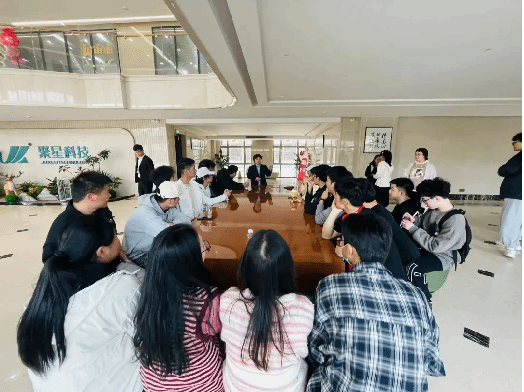 参观结束后,同学们围坐在HR周围,提出关于岗位设置、福利待遇、未来发展方面的疑问,HR耐心地给出解答,并分享了自己在企业工作多年的工作经验和感受。