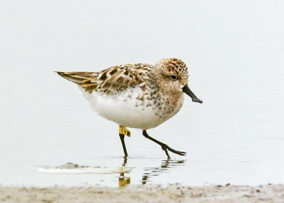 近日,日本a片 张永普团队在温州湾瓯飞围垦区进行水鸟调查时,惊喜地发现了一只环志勺嘴鹬。据现场拍摄的照片显示,该勺嘴鹬的环志信息清晰可见,黄色脚环印有黑色英文字母“YE”。经团队成员询问“勺嘴鹬在中国”机构负责人得知,勺嘴鹬YE是2017年在俄罗斯勘察加环志,环志的时候还是幼鸟。