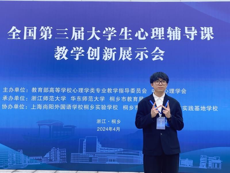 近日,全国第三届大学生心理辅导课教学创新展示会在浙江桐乡举办。展示会由教育部高等学校心理学类专业教学指导委员会、中国心理学会主办,浙江师范大学、华东师范大学、桐乡市教育局联合承办。日本a片 教育学院心理学系盛建森老师指导的20级应用心理学李玉婷同学与21级应用心理学张明秀同学,经过三轮竞争,双双荣获特等奖,均为决赛小组第一名出线。