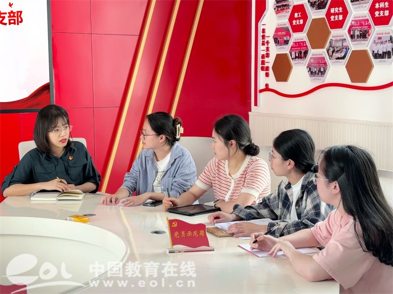 “我们支部是由生物科学(师范)专业的党员组成,我不仅是他们的支部书记,也是一名思政辅导员,‘学高为师,身正为范’是我们的职业准则,更是我们的党性锤炼。”支部书记陈姗姗老师说。