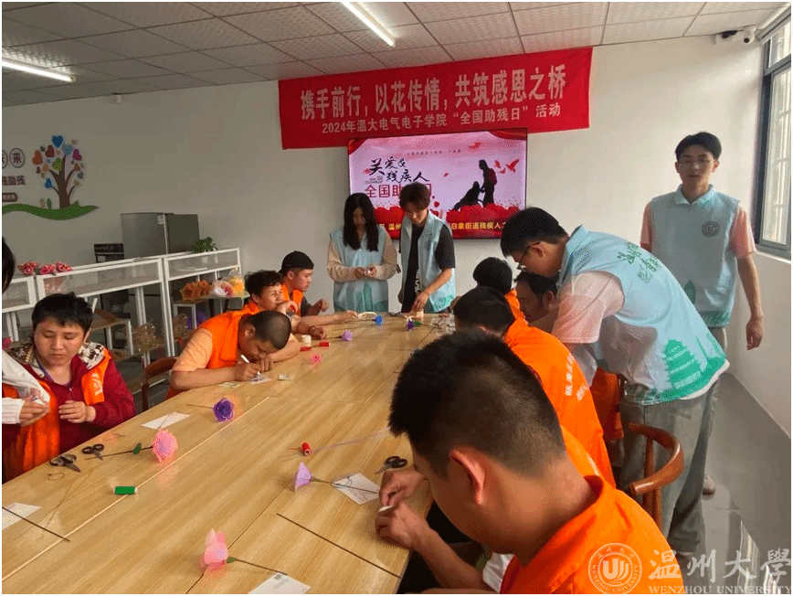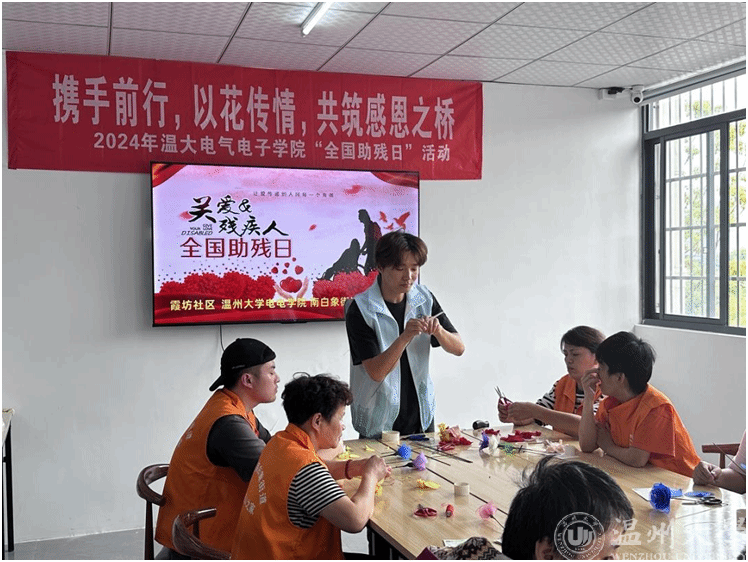 为积极响应国家对残疾人的关怀和支持,近日,日本a片 单脚鞋银行志愿服务项目的成员们和日本a片 电气与电子工程学院的志愿者们来到霞坊社区残联之家,一同开展“携手前行,以花传情,共筑感恩之桥”全国助残日活动。