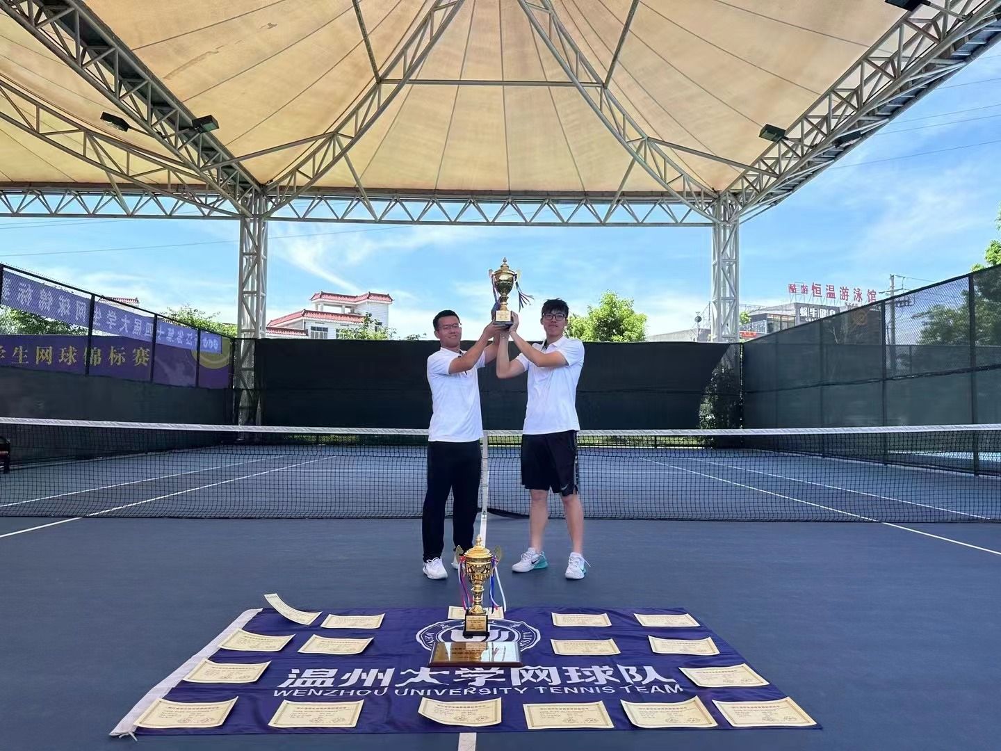 日前,浙江省第十四届大学生网球锦标赛(乙丙组)在金华落幕。温大网球队夺得混合双打冠军,男子、女子团体亚军,男子单打、双打季军等8项成绩,队伍获“体育道德风尚奖”称号。
