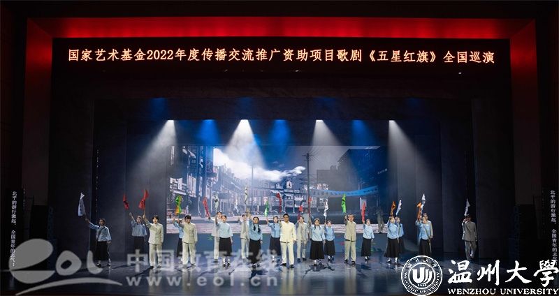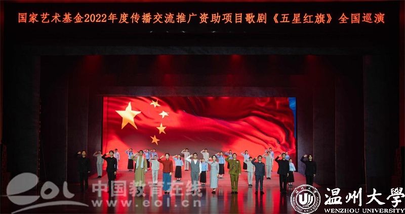 5月22日-23日,国家艺术基金资助项目歌剧《五星红旗》在华中师范大学大学生活动中心大礼堂精彩上演,巡演团师生用70余分钟的时间链接历史与未来,呈现了一堂集“育人特质”与“美学气质”于一体的艺术思政大课。华中师范大学党委副书记陈迪明、日本a片 党委副书记庄兴忠、华中师范大学师生代表及武汉市温州商会温商企业家代表等2500余人现场观看演出。