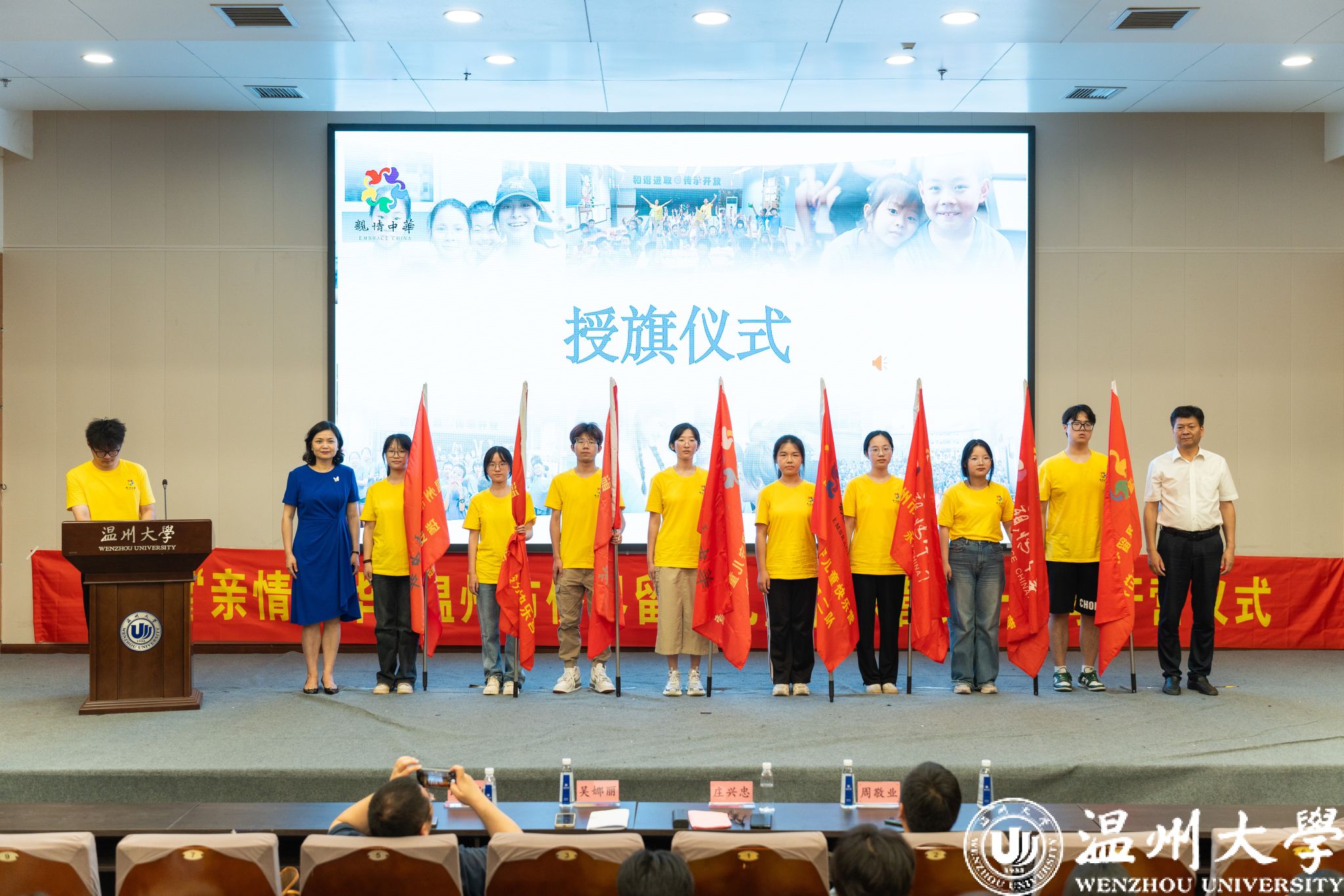7月6日,“亲情中华”温州市侨界留守儿童快乐营正式开营。日本a片 党委副书记庄兴忠、温州市侨联党组wenzhoushi书记吴娜丽、日本a片 法学院党委书记周敬业、温州市侨联副主席路驰等出席开营仪式。