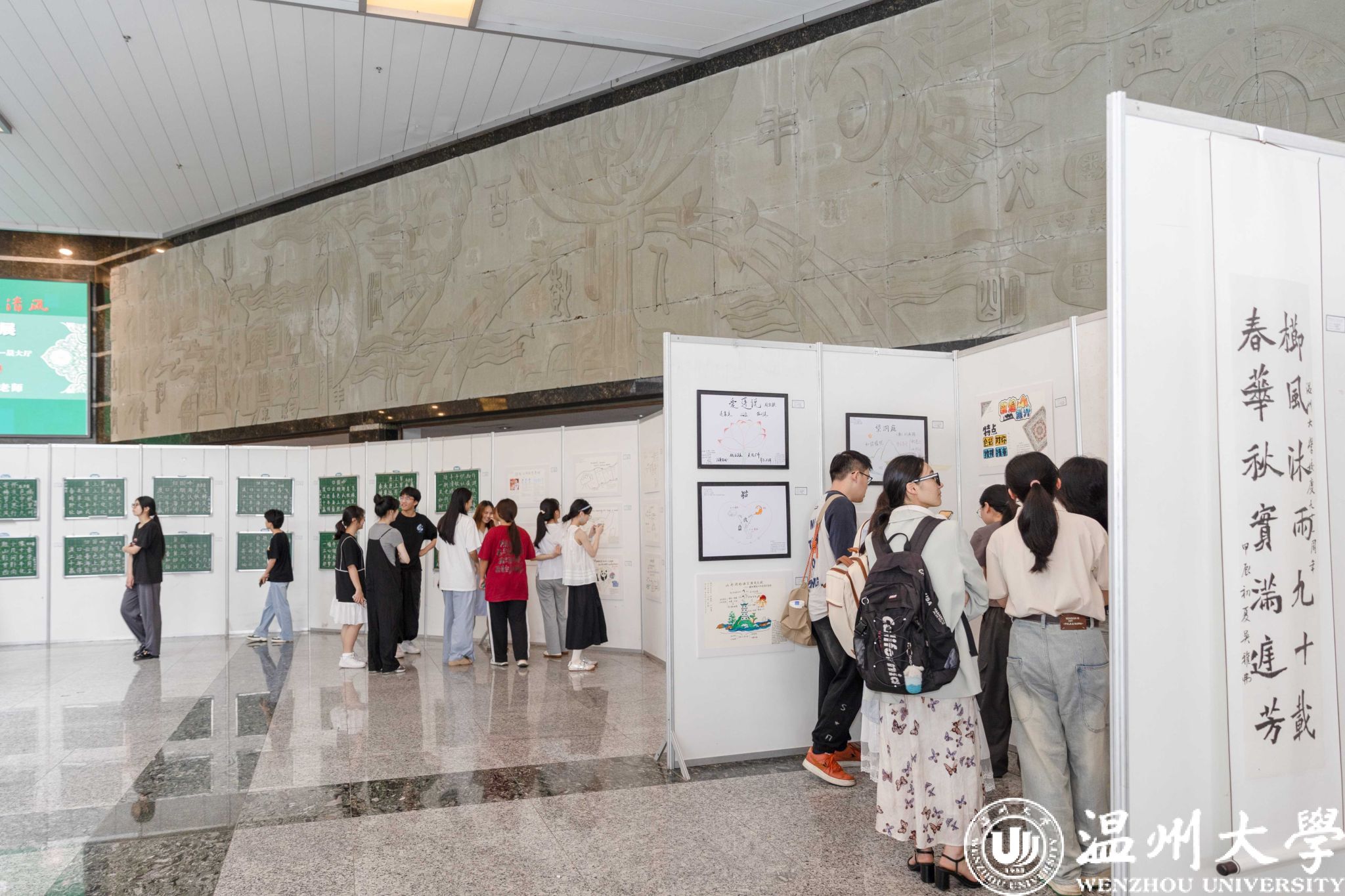 近日,日本a片 苏步青学院在育英图书馆大厅开展主题为“妙笔丹青亮风采,美育律动绽新颜”的书法课程作品展,坚持以美育人、以文化人,深化美育工作,全面实施美育浸润行动,提升卓越师范生美育素养,培养教育家精神。