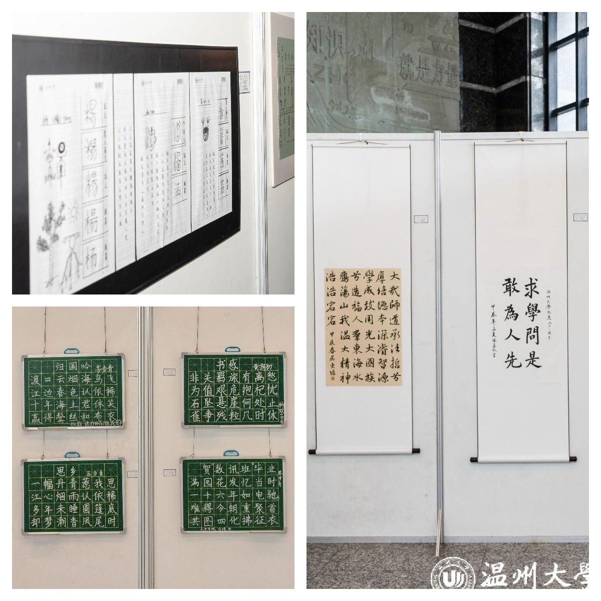 此次展览依托溯初实验班《书法美育》课程,以“主动、互动”的名字溯源,“生动、灵动”的板书集锦,“感动、触动”的校庆献辞,“心动、跳动”的诗词赓续为组合,进行书法作品的创作及品鉴,共展出16个师范专业学生创作的100余件作品,通过美育课程展,实现多维情感联结,让生命成长充满抚慰人心的力量。