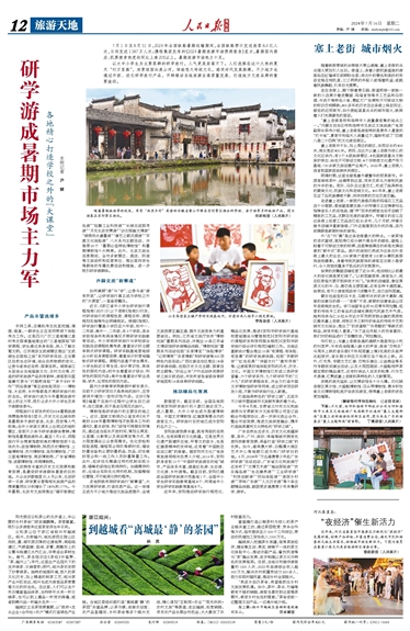 以大中小学生为主要客群的研学旅行,人气更是居高不下。人们选择在这个火热的夏天“行万里路”,欣赏祖国壮美山河,体验悠久传统文化,感受时代发展脉搏。不少地方也通过升级、优化研学旅行产品,开辟推动当地旅游业高质量发展、打造地方文旅品牌的重要途径。