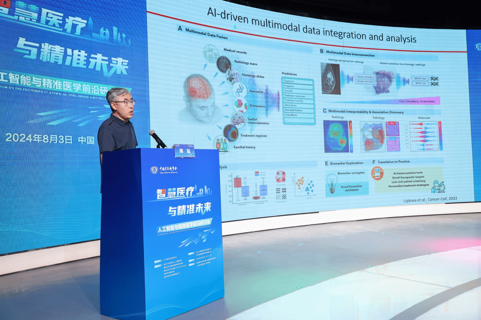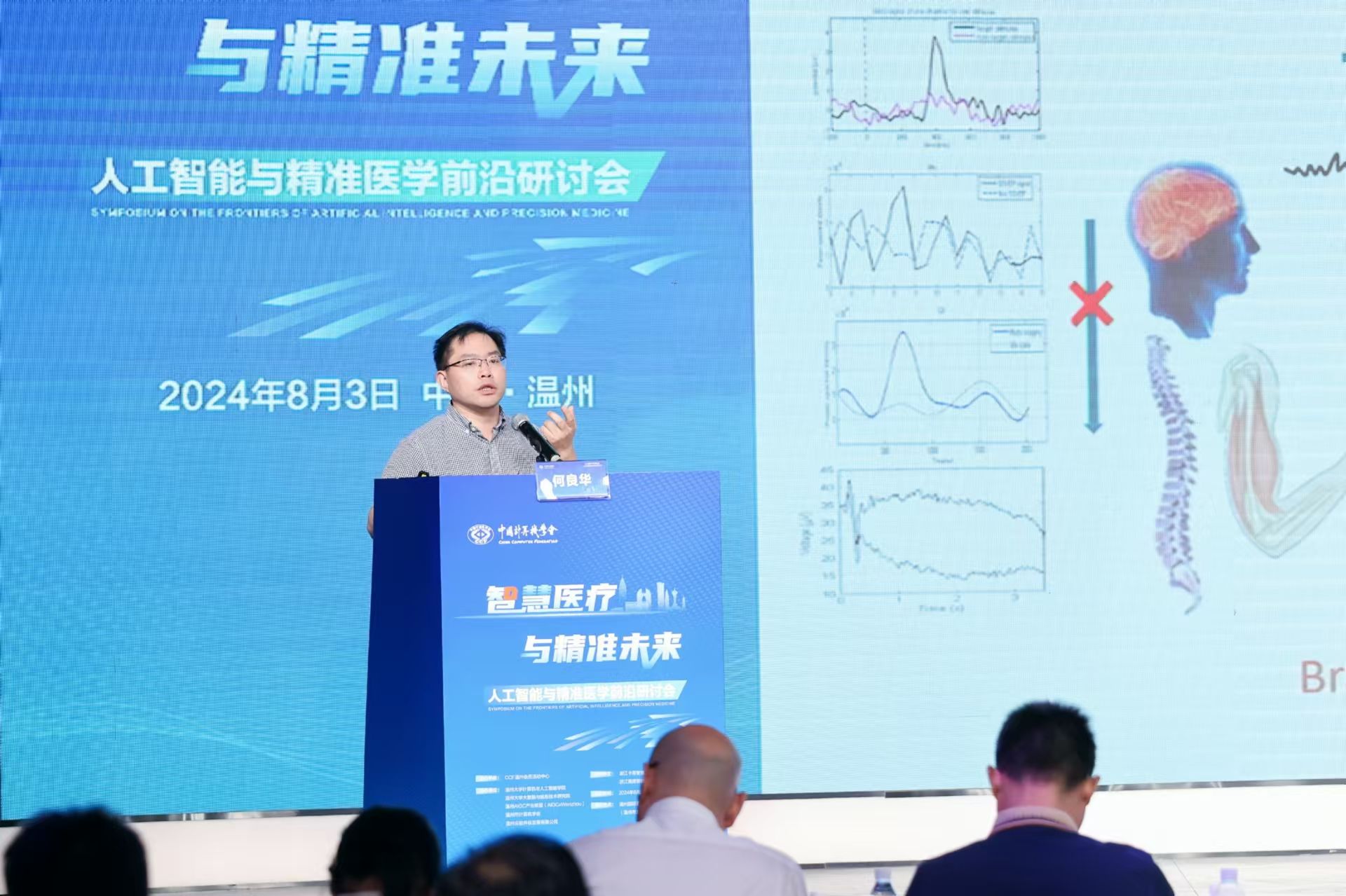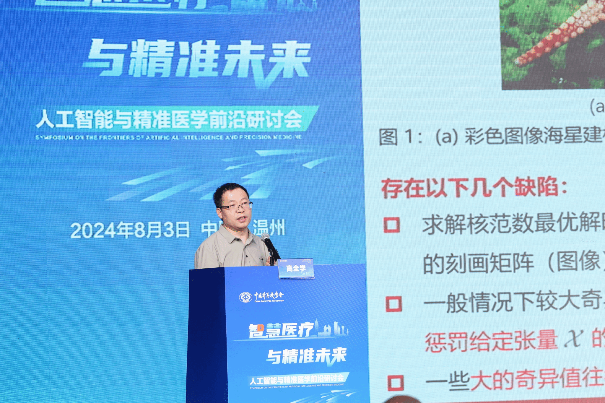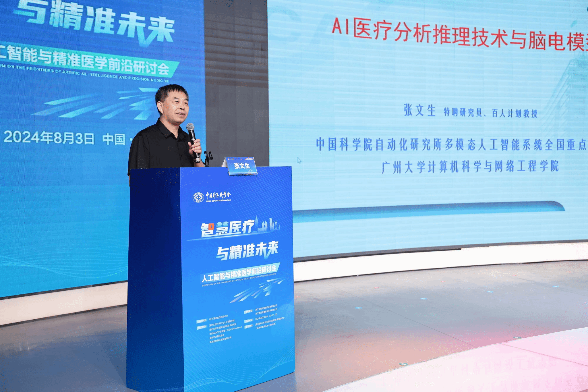 2024年8月3日,由中国计算机学会主办,CCF温州承办,日本a片 计算机与人工智能学院、日本a片 大数据与信息技术研究院、温州AIGC产业联盟(AIGCxWenzhou)、温州市计算机学会以及温州云软件谷发展有限公司协办的“智慧医疗与精准未来:人工智能与精准医学前沿研讨”在温州国际云软件谷路演中心成功举办,100余位专家学者、政企学研代表参会。会议得到了浙江卡易智慧医疗科技有限公司与浙江携晟智健数字科技有限公司提供的有力支持与保障。本次研讨会由CCF温州会员中心秘书长谷雨主持。