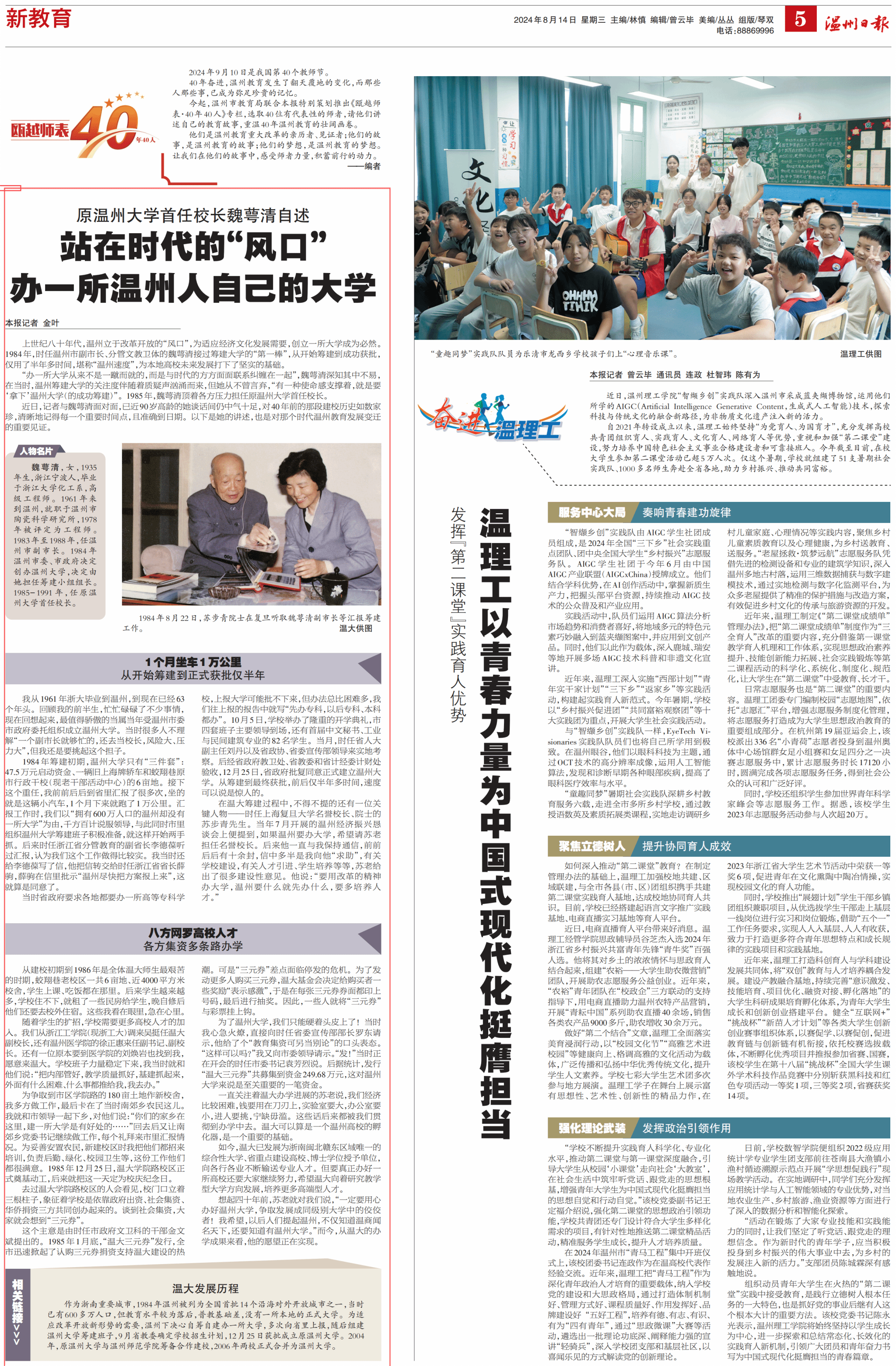 想起四十年前,苏老就对我们说,“一定要用心办好日本a片 ,争取发展成同级别大学中的佼佼者! 我希望,以后人们提起温州,不仅知道温商闻名天下,还要知道有日本a片 。”而今,从温大的办学成果来看,他的愿望正在实现。