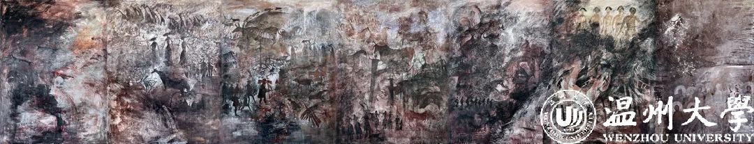 时至今日,长卷壁画成为了关明新颇为喜爱的创作形式。今年,他创作的壁画《人类文明的史诗》入选浙江省第十五届美展并获银奖。他认为,长卷壁画能让创作者和观赏者实现思想上的碰撞。“在这个快节奏的时代,长幅的图像能让我慢下来,静静去感受内心的渴望,同样也希望我的作品能够打动人心,让大家在观赏时慢下来,去感受图像的结构、韵律和节奏,进而感受自己的内心。”