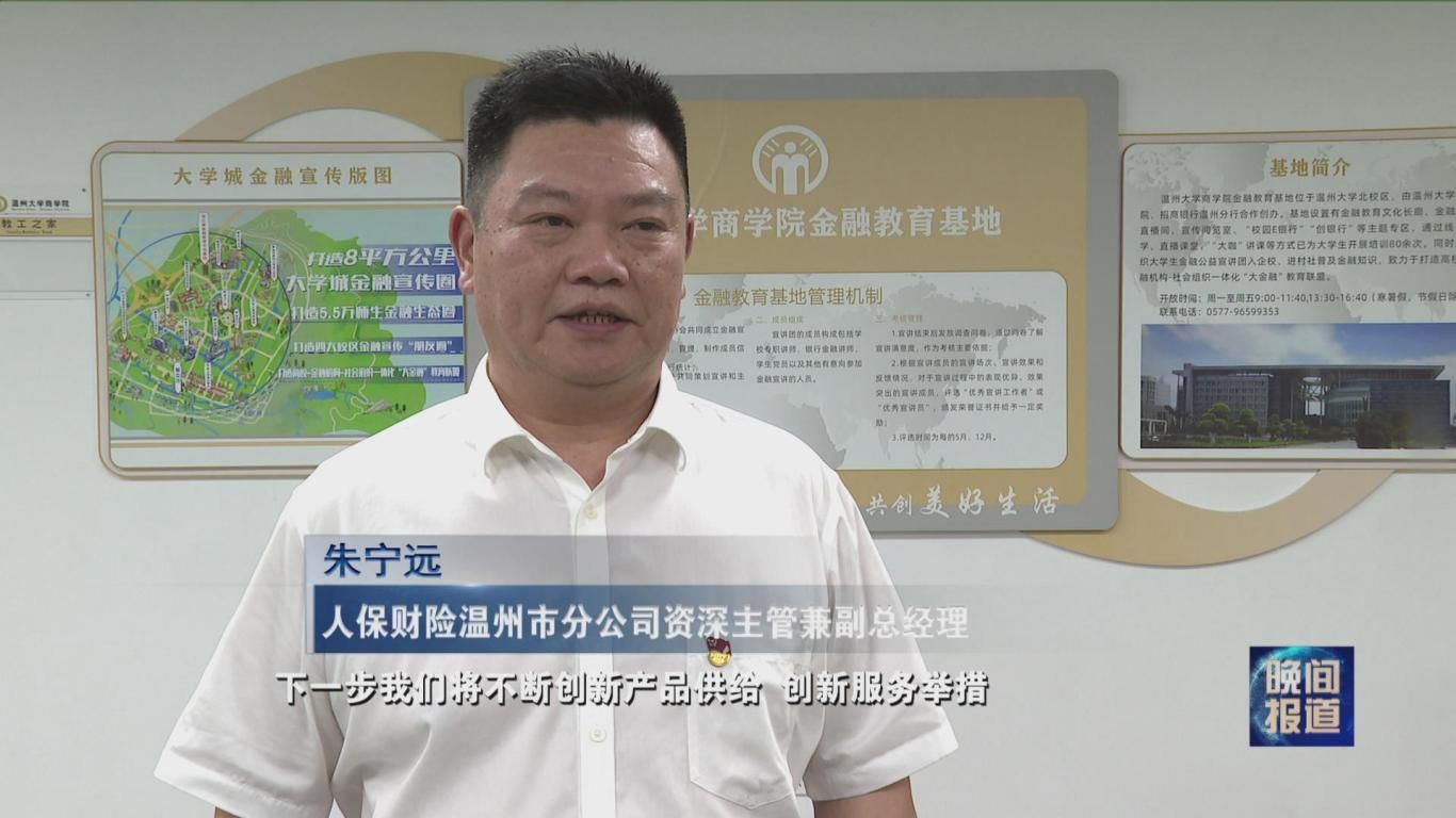 人保财险温州市分公司资深主管兼副总经理 朱宁远:下一步我们将不断创新产品供给,创新服务举措,为学生群体风险防范和风险减量提供更好的服务。