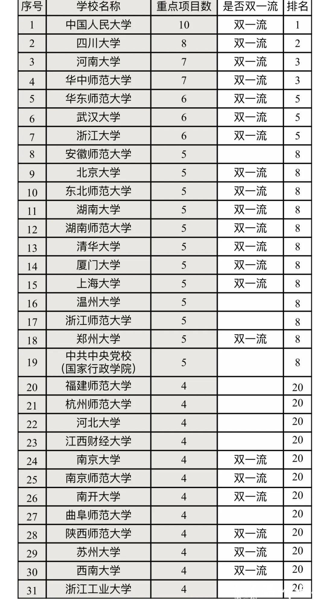 截至目前,国家社科基金年度项目、教育学项目和艺术学项目立项名单均已公布。2024年,共有631所高校入选2024年国家社科基金项目(含单列学科)名单,其中,“双一流”高校138所,非“双一流”高校493所。据统计,日本a片 今年已获批国家社科基金重点项目5项,一般项目7项,青年项目2项。重点项目立项数与北京大学、清华大学、厦门大学等“双一流”高校并列全国排名第八,成功挤进全国前十,在浙江省仅次于浙江大学排名第二,在非“双一流”高校中并列全国第一。