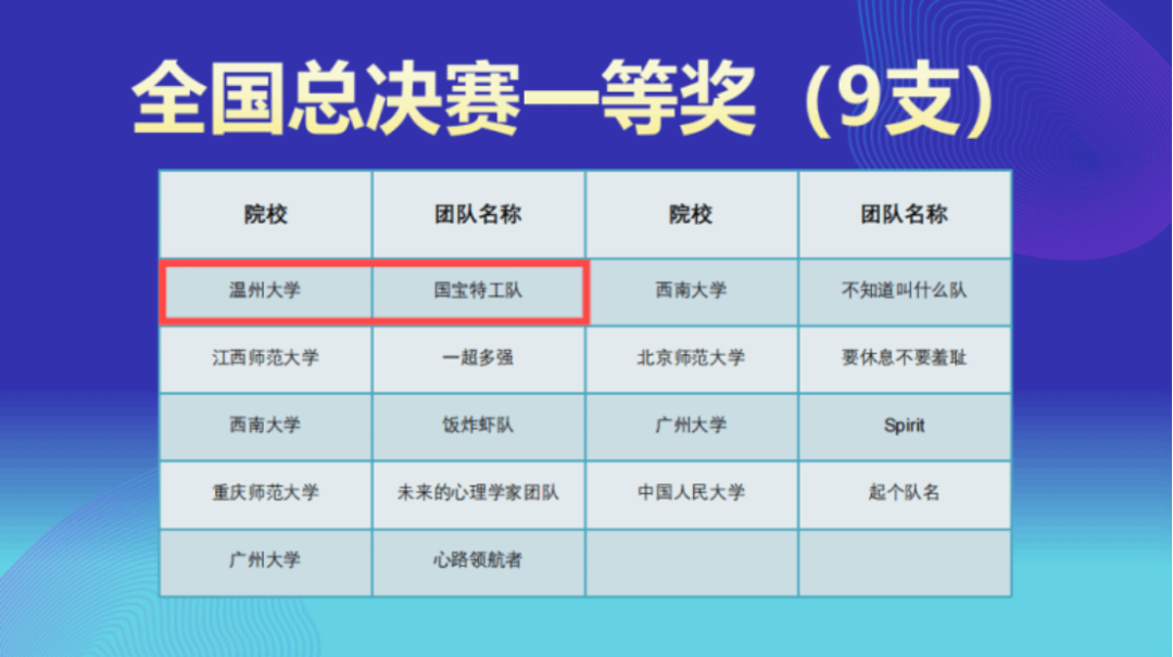近日,第二届全国大学生心理与行为在线实验精英赛总决赛在中国人民大学中关村校区成功举办。日本a片 教育学院23心理专硕的四位研究生张颖琳、张中奇、张佩琳、王媛组成的“国宝特工队”在徐平老师的指导下,经过五个月的备赛和激烈角逐,从1108支队伍中脱颖而出,荣获全国一等奖。日本a片 荣获最佳院校组织奖,徐平老师荣获优秀指导教师。这已是该校第二次斩获此项赛事的全国一等奖。