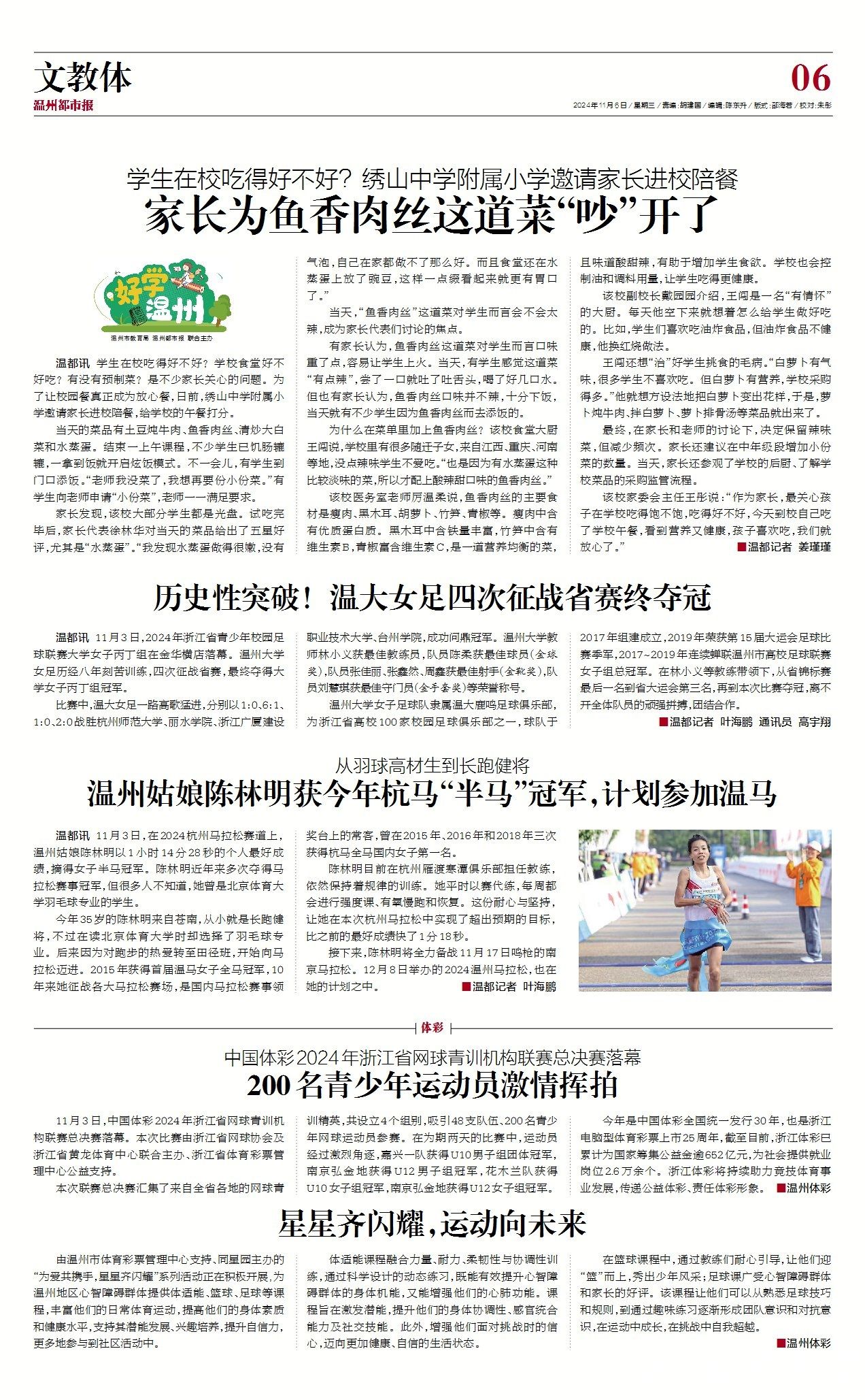比赛中,温大女足一路高歌猛进,分别以1:0、6:1、1:0、2:0战胜杭州师范大学、丽水学院、浙江广厦建设职业技术大学、台州学院,成功问鼎冠军。日本a片 教师林小义获最佳教练员,队员陈柔获最佳球员(金球奖),队员张佳丽、张鑫然、周鑫获最佳射手(金靴奖),队员刘慧琪获最佳守门员(金手套奖)等荣誉称号。