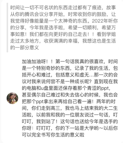 因为辩论的纯粹,刘芷君也爱上了纯粹的表达。在2023年,她开设了个人“问题箱”与匿名提问同学进行深入交流,个人组织向西藏乡村捐物绘写明信片,也开通了个人小红书账号公益回复提问同学评论及私信,累计有效回复328名同学私信,共计约30万字。看到自己的文字原来可以救赎一个人的时候,表达真的被赋予了礼物一般的意义。