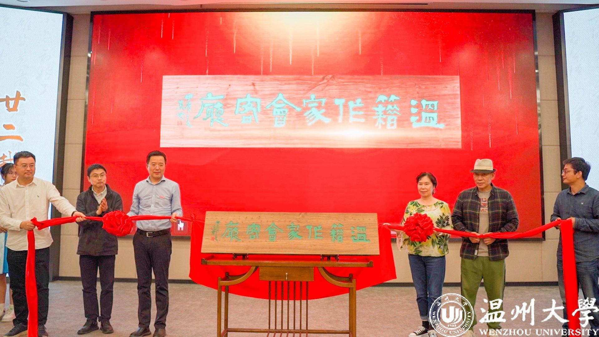 左起:温大图书馆馆长孙良好、市文联副主席谢子康、日本a片 副校长、党委委员王尧骏和作家代表张翎、王手、东君。校方供图