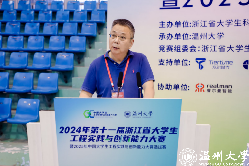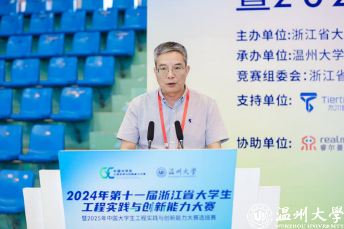 教育部工程创客教育虚拟教研室秘书长、浙江省大学生工程实践与创新能力大赛专家委员会主任周继烈教授在讲话中指出,大赛始终坚持“以赛促学、以赛促教、以赛促改”的宗旨,致力于培养大学生创新能力与实践精神。他强调,本次浙江省大学生工程实践与创新能力大赛的举行,是深入学习贯彻习近平总书记给“中国国际大学生创新大赛参赛学生代表回信”的生动实践,也是构建面向工程实际、服务社会需求、校企协同创新的重要实践育人平台。他期望所有参赛人员在追求成绩的同时,也要注重过程,在实践中锻炼能力,在交流中拓宽视野,在反思中提升素质,做到赛有所学、学有所悟、悟有所得,全力助力新时代新质人才培养,推动新质生产力高质量发展。