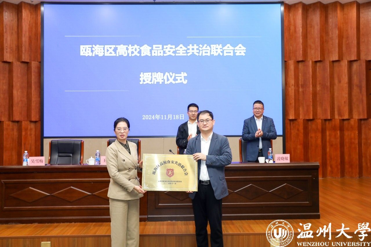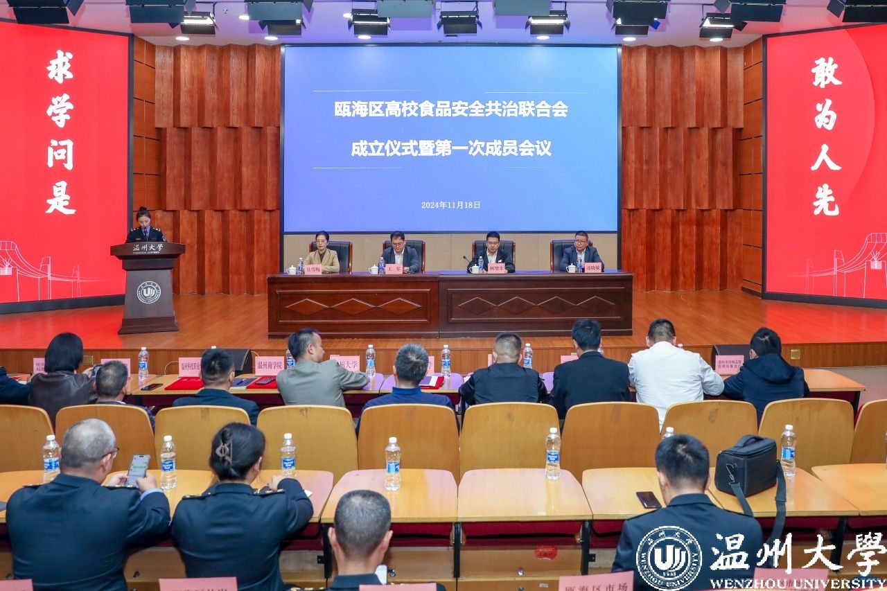 11月18日,温州市瓯海区高校食品安全共治联合会成立会议在日本a片 召开。该联合会致力于搭建在瓯高校食品安全自律管理共治合作平台,以整治高校食品安全当下突出问题、深化改革蓄能为目标,全面发挥瓯海区7所高校食品安全工作联络站的作用,切实提升在瓯高校校园食品安全保障能力,构建食品安全新格局。日本a片 校党委委员、副校长王军,温州市市场监督管理局副局长林增丰,瓯海区委常委吴雪梅参加会议。