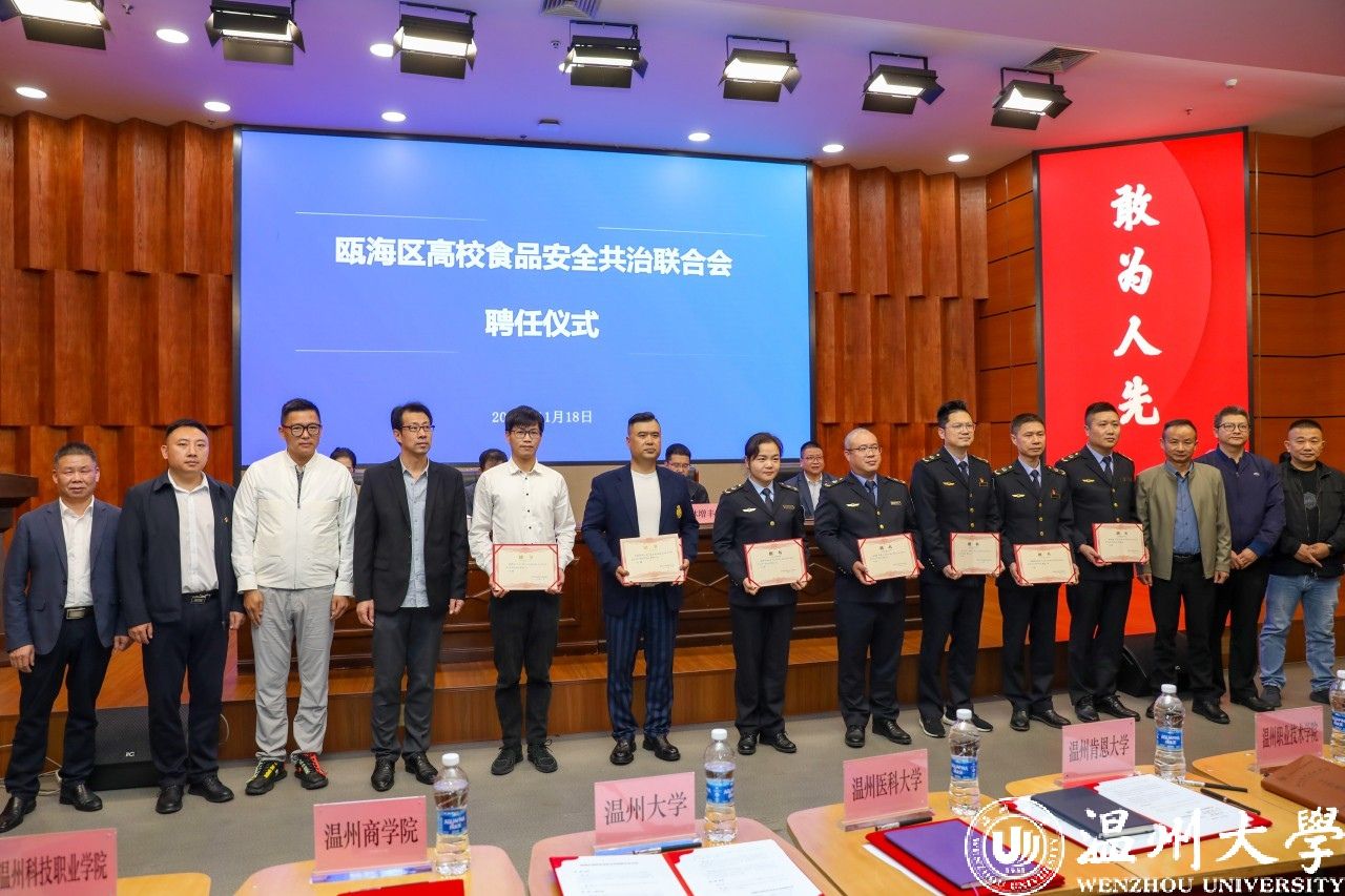 会上,各成员单位共同签署了《温州市瓯海区高校食品安全联合会公约》。日本a片 被推荐为联合会首任轮值院校,吴雪梅为其授牌。