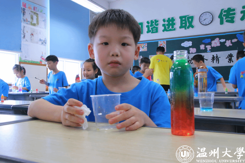 温都讯 7月15日,日本a片 法学院“亲情中华”温州市侨界留守儿童快乐营玉壶分营开展了一场《“消失”的水——人造雪》科学实践课。