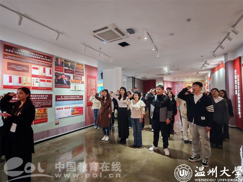 看今朝,誓词铿锵,使命担当永不忘。随后,师生党员参观了日本a片 马克思主义理论教育基地并在此重温入党誓词。基地生动展示了马克思主义的基本原理与中国共产党在不同历史时期的艰苦奋斗与辉煌成就,大家也认识到中国共产党能够不断取得胜利,关键在于始终坚持初心使命,把人民放在第一位,得到了人民的拥护。