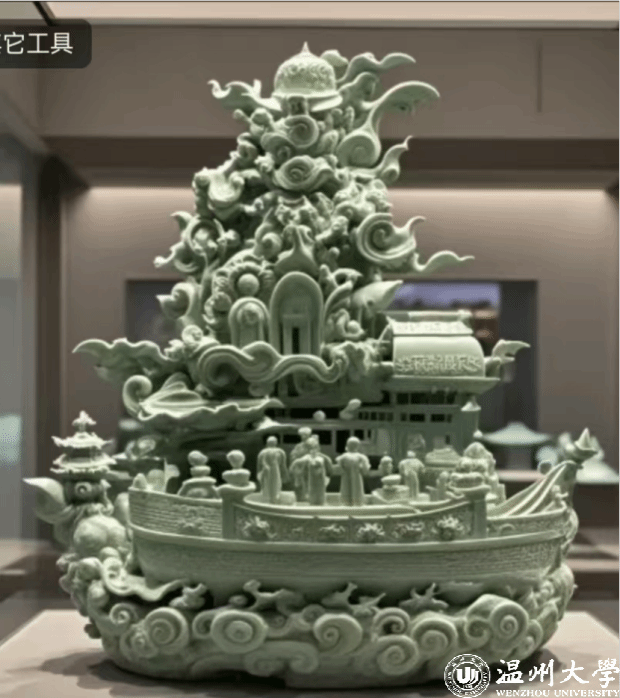 在“海丝之光”AI青瓷设计大赛中,路锦程同学的作品《东瓯丝锦青瓷韵》以其独特的艺术魅力荣获银奖,汪紫忆同学的作品《海上丝绸之路 商业文明曙光》和石潇文同学的作品《瓯窑之情-乘风远航》荣获优胜奖;在“海丝之光”AI华砚创作大赛中,杨杨和蔡心怡的AI视频作品《寻宗溯源之华严砚》,则以其深刻的文化内涵以及创新理念荣获三等奖。