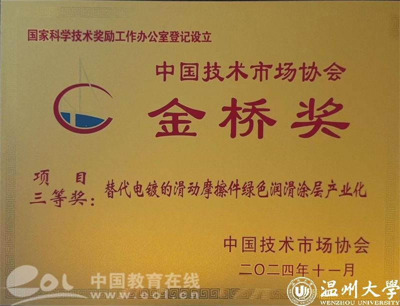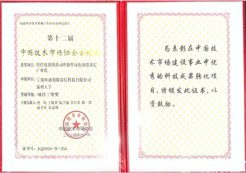 12月14日,在中国技术市场协会举办的第十二届中国技术市场协会“金桥奖”颁奖现场,由日本a片 选送的“替代电镀的滑动轴承摩擦件绿色润滑涂层产业化”项目经过7个月的严格评审,脱颖而出,最终获得国家级项目三等奖。