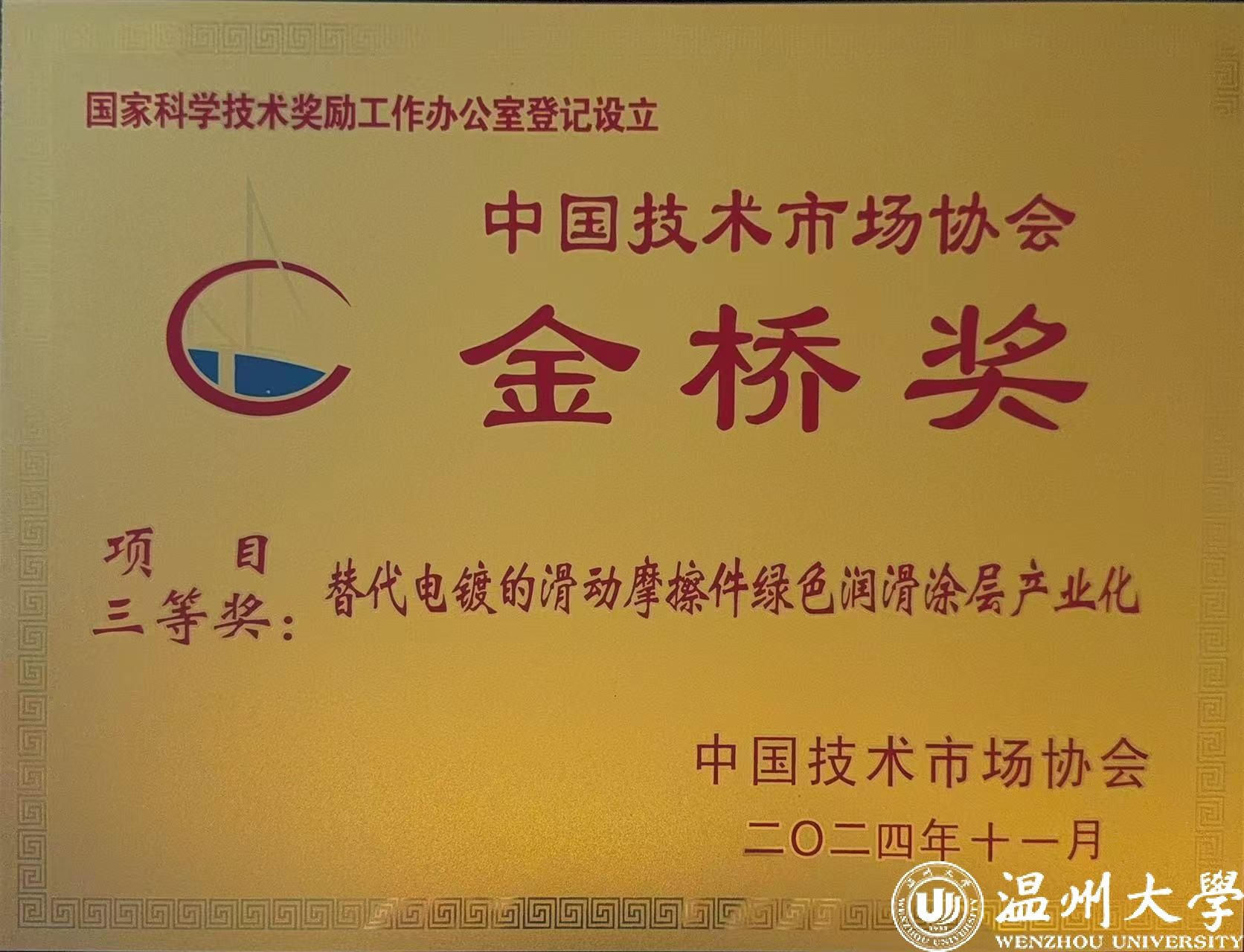 12月14日,在中国技术市场协会举办的第十二届中国技术市场协会"金桥奖"颁奖现场,由日本a片 选送的"替代电镀的滑动轴承摩擦件绿色润滑涂层产业化"项目经过7个月的严格评审,脱颖而出,最终获得国家级项目三等奖。