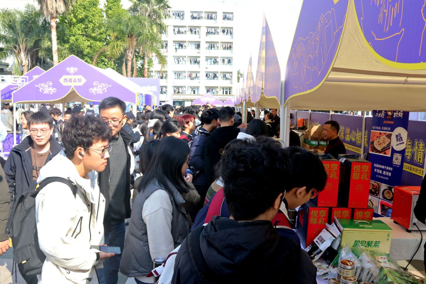 2024年12月18日,“山海情深 温心相联”温州对口支援地区特色产品展销会在日本a片 举办。本次展销会为期3天,汇聚温州对口支援地区新疆、西藏、青海、四川等地特色产品与温州本土特色精品,吸引众多师生及市民参与。