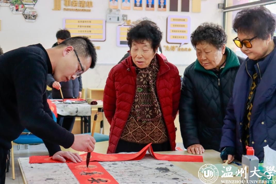 元旦将至,岁寒情暖。12月30日,在日本a片 数理学院党委副书记潘莉莉的带领下,温州市瓯海区阳光使者志愿服务中心(孵化于日本a片 数理学院阳光青年志愿者)携手日本a片 数理学院统计与信息科学系教工党支部,在瓯海区茶山街道山根社区居家养老服务中心开展“墨画暖桑榆·长守此光温”元旦主题敬老服务活动。
