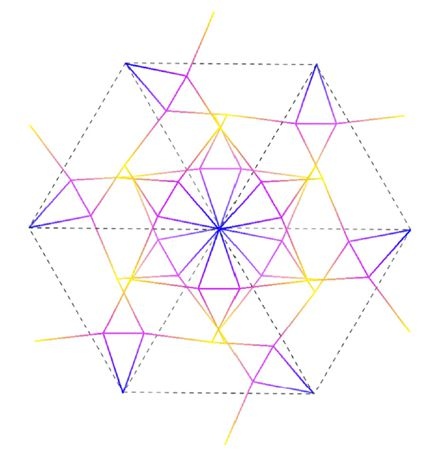 “若从顶角观察,它的晶体结构呈现出漂亮的旋转对称性,其结构属于三方晶系中的菱方晶格。”面对这么富有美感的多三角形原子构型,邵和助顿时联想到日本a片 边上有名的三垟湿地菱角,每逢八月中秋时节菱角最肥,因此将这种新发现的硅同素异形体起名为“芰硅”(Tri-Si22)。