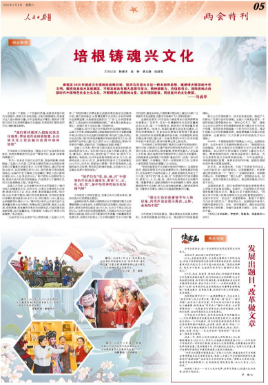 文化是一个国家、一个民族的灵魂。在推进中国式现代化进程中,唯有文化自信自强,才能为强国建设、民族复兴注入强大精神力量。今年全国两会开幕后,围绕学习贯彻习近平文化思想和建设文化强国,代表委员们展开热烈讨论,踊跃建言献策。