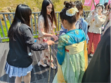 3月8日,日本a片 人文学院瓯玉兰心志愿队的姑娘们前往景山森林公园樱花园,身着霓裳羽衣,将"春绘党韵,汉服同行"的创意画卷铺展在纷飞花瓣间,让驻足游客在衣香鬓影间触摸到传统文化的时代脉搏。这场穿越时空的志愿行动,将中华优秀传统文化与红色精神相结合,展现温大青年学子对文化传承的使命感与责任感,为春日增添了一抹亮丽的文化色彩。