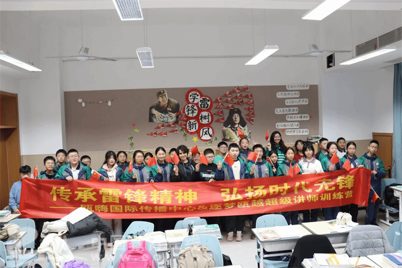 3月3日,在第62个全国“3·5”学雷锋纪念日来临之际,日本a片 外国语学院瓯·嗨国际传播中心联合“逐梦瓯越”超级讲师训练营及“玉兰花”志愿服务队在日本a片 附属茶山实验中学举办了一场以“传承雷锋精神,弘扬时代先锋”为主题的双语课堂活动,旨在通过双语教学和跨文化交流,进一步弘扬雷锋精神,激发青少年的爱国情怀和社会责任感。活动中,来自国外的留学生代表与英语师范生们一起为中学生读一读雷锋日记,讲一讲雷锋故事,谈一谈雷锋精神。
