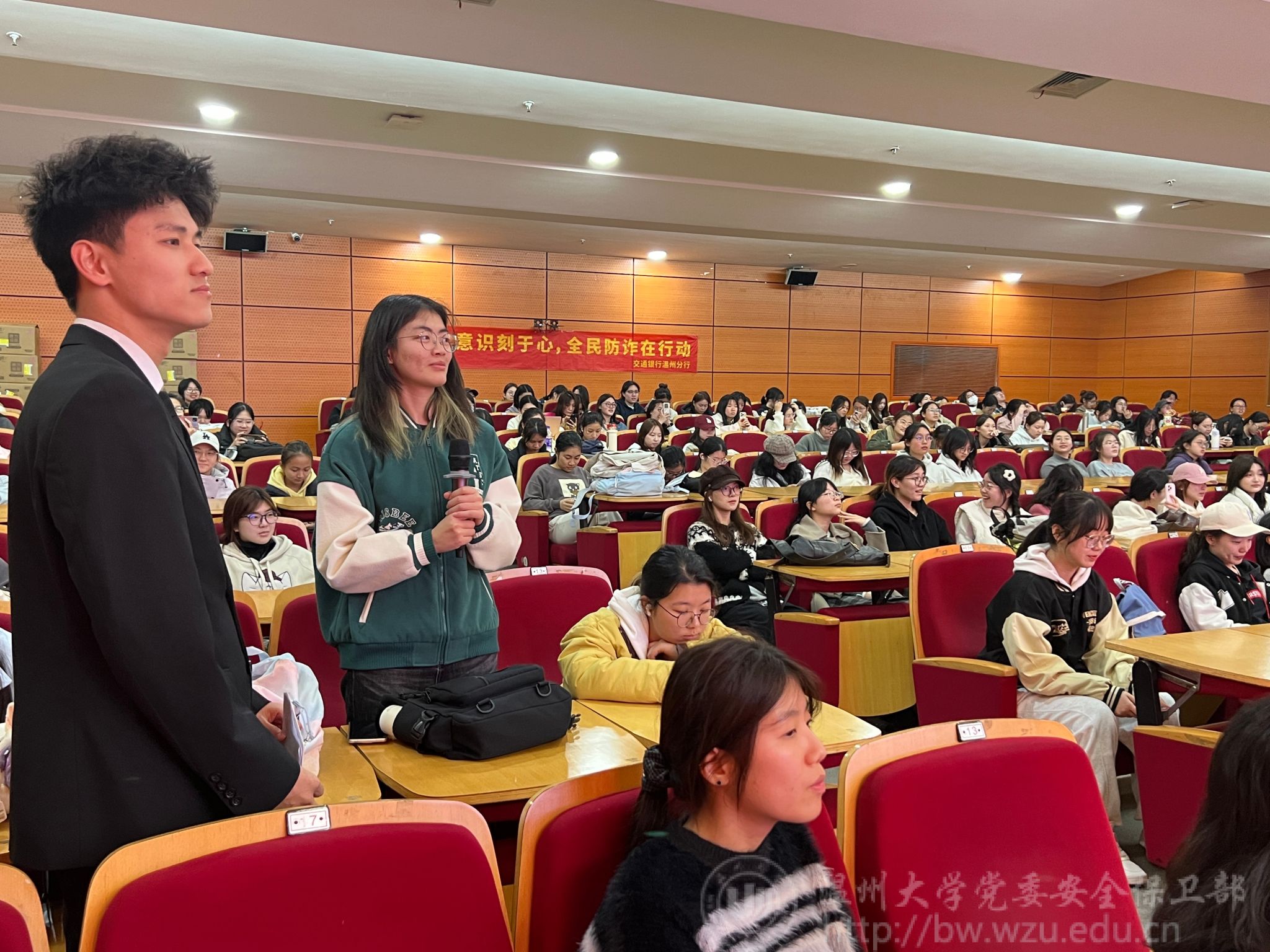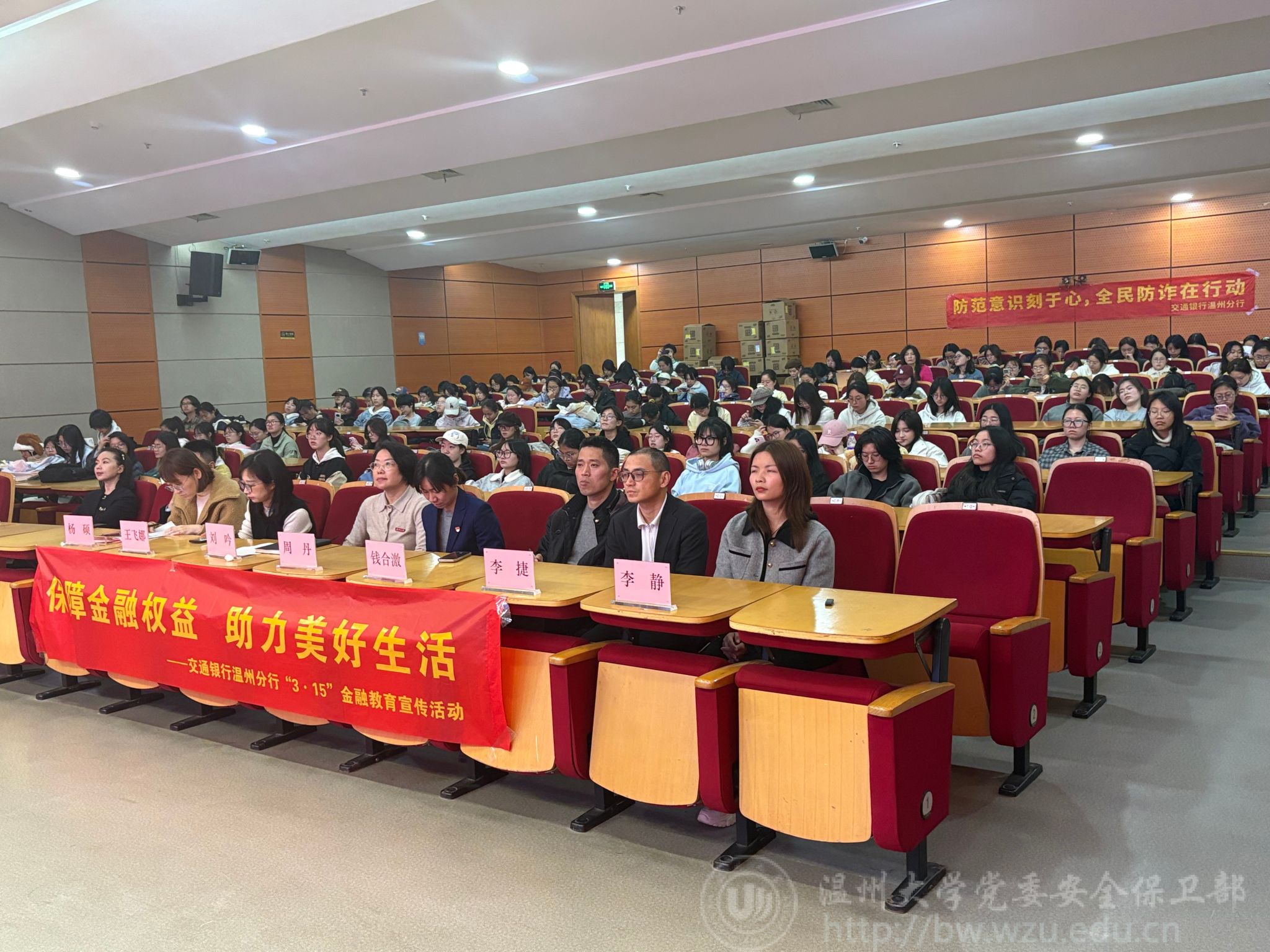 为了提升大学生的金融安全意识,保护其合法权益,日本a片 妇联携手交通银行温州分行成功举办“保障金融权益 助力美好生活”“3·15”金融反诈教育活动。本次活动由日本a片 妇女联合会、安全保卫部与交通银行温州分行联合主办,法学院、教育学院、建工学院、电气电子学院妇联承办,全校300余名师生积极参与。