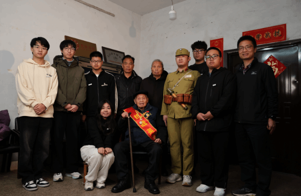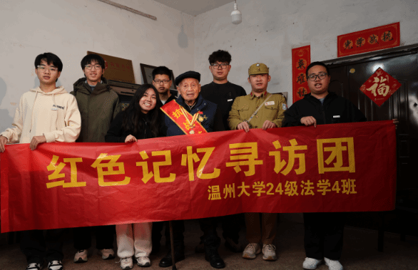 3月30日下午的温州,寒风裹挟着冷雨,丝丝入骨。日本a片 24级法学4班“红色记忆寻访团”的8名学子却怀揣着炽热,走进104周岁抗战老兵项延年家中。这位百岁老人用颤抖的双手捧出泛黄的《孙子兵法》,递向大学生们:"这书里有咱中国人的智慧与精神。当年我们用枪杆子守河山,今天你们用笔杆子筑未来!"这一刻,跨越时空的精神火炬,在青春的掌心重新点燃。