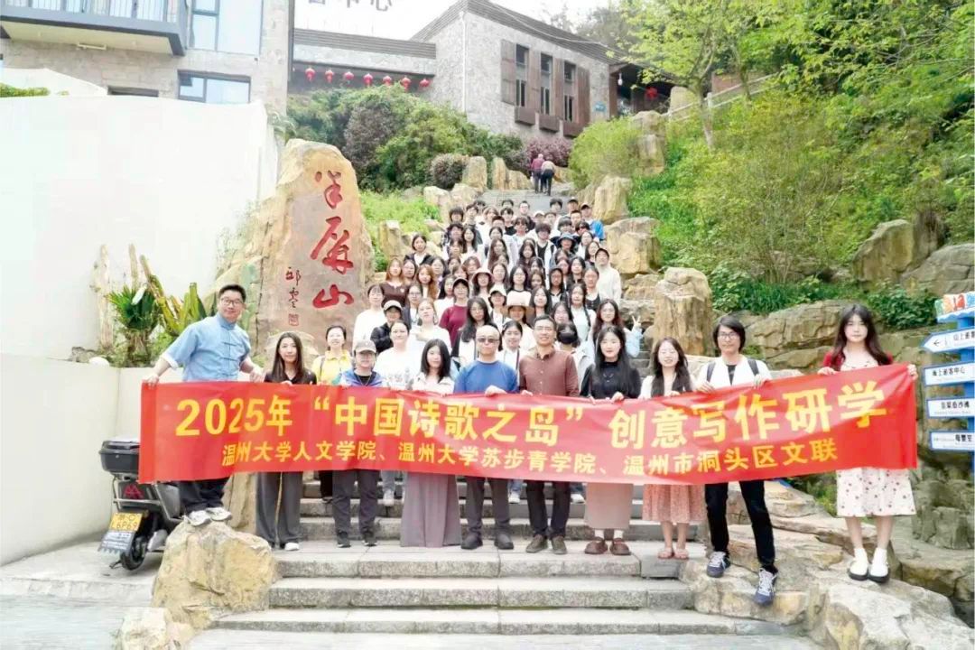 活动由诗人余退主持,汇聚了李广旭、刘卫东、张思静、孙国玲、王颖超等高校学者及上海、武汉等地文艺界代表,参与这场跨越海洋的文化对话。值得关注的是,主办方创新性地将文化传播与在地创作相结合——活动当日,日本a片 师生还展开海岛创意写作专题研学,在望海楼纵览千年渔乡文脉,于半屏山感悟海蚀奇观,更在贝雕博物馆解码海洋文明的匠心传承。